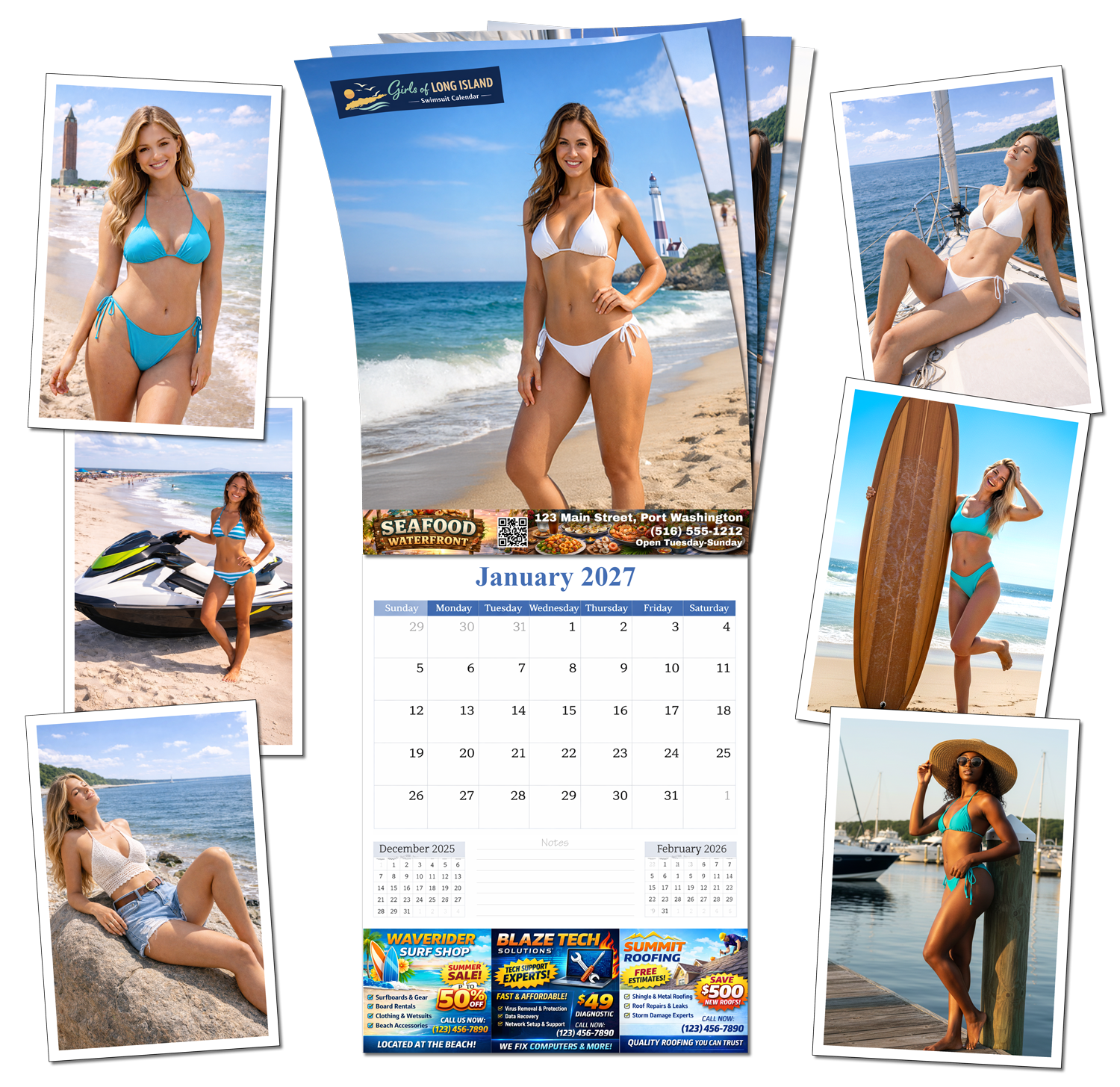 The Girls of Long Island Swimsuit Calendar is a professionally produced swimsuit calendar and lifestyle photo series celebrating the confidence, beauty, and unmistakable summer energy of Long Island. Selected models will be photographed at iconic waterfront locations—beaches, marinas, yachts, sailboats, and along the shoreline—in a polished, publication-quality production designed to showcase coastal lifestyle at its best.