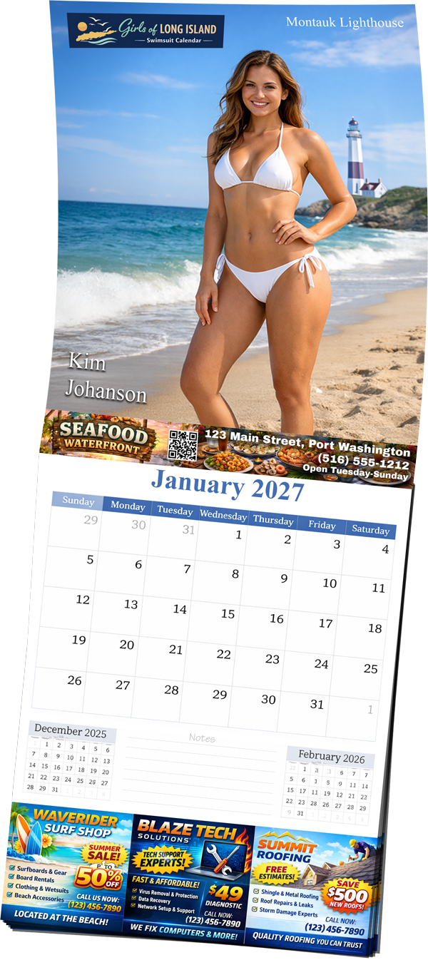 Fifteen models will be photographed at the various locations. Twelve will ultimately be selected for the printed calendar; additional models may be used for promotional materials, extended features, digital campaigns, and future editions—positioning the Girls of Long Island Swimsuit Calendar as an ongoing regional lifestyle brand, not just a one-time publication.
